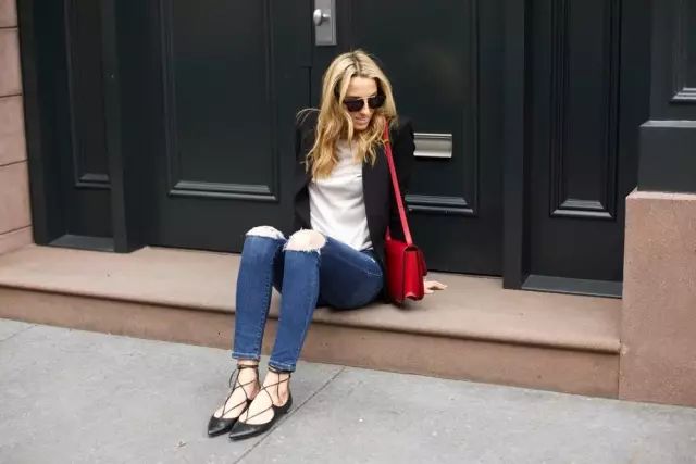 当然啦,如果怕显腿短的话,就尽量选露肤更多的细绑带或裸色平底鞋哦~