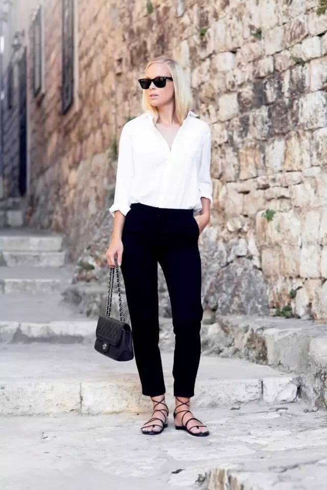 在气温居高不下的暮夏时节,9分裤+凉鞋/凉拖依然保持着极高的出街频率,比起其他写来说,这两种鞋显得更加随性自由!