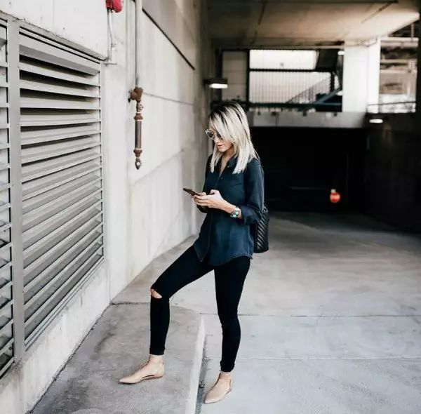 尖头鞋和9分裤是优雅又不失少女心的CP,尖头鞋本身就比较显高,可以从视觉上拉长腿部线条,让你看上去更加高挑有气场。