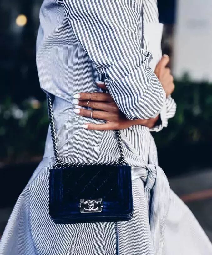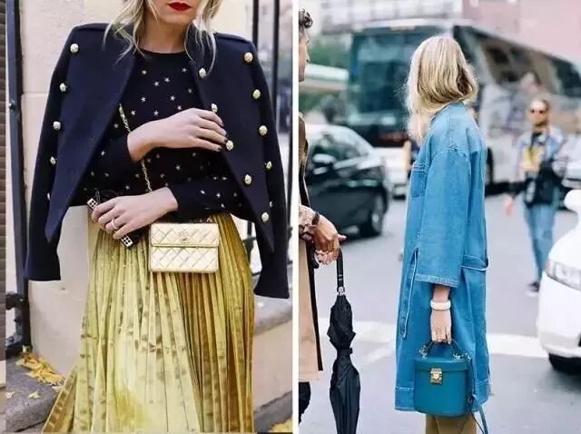 穿短款的上衣和短款连衣裙时就很合适拿手拿包,显得简单又时髦。