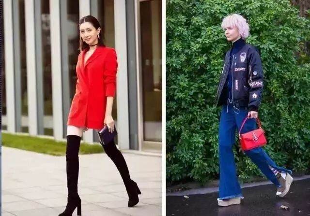 红蓝CP是最最简单的搭配,也不用怕搭错,简洁干练的时装与红色类的包包搭配都惹眼极了!