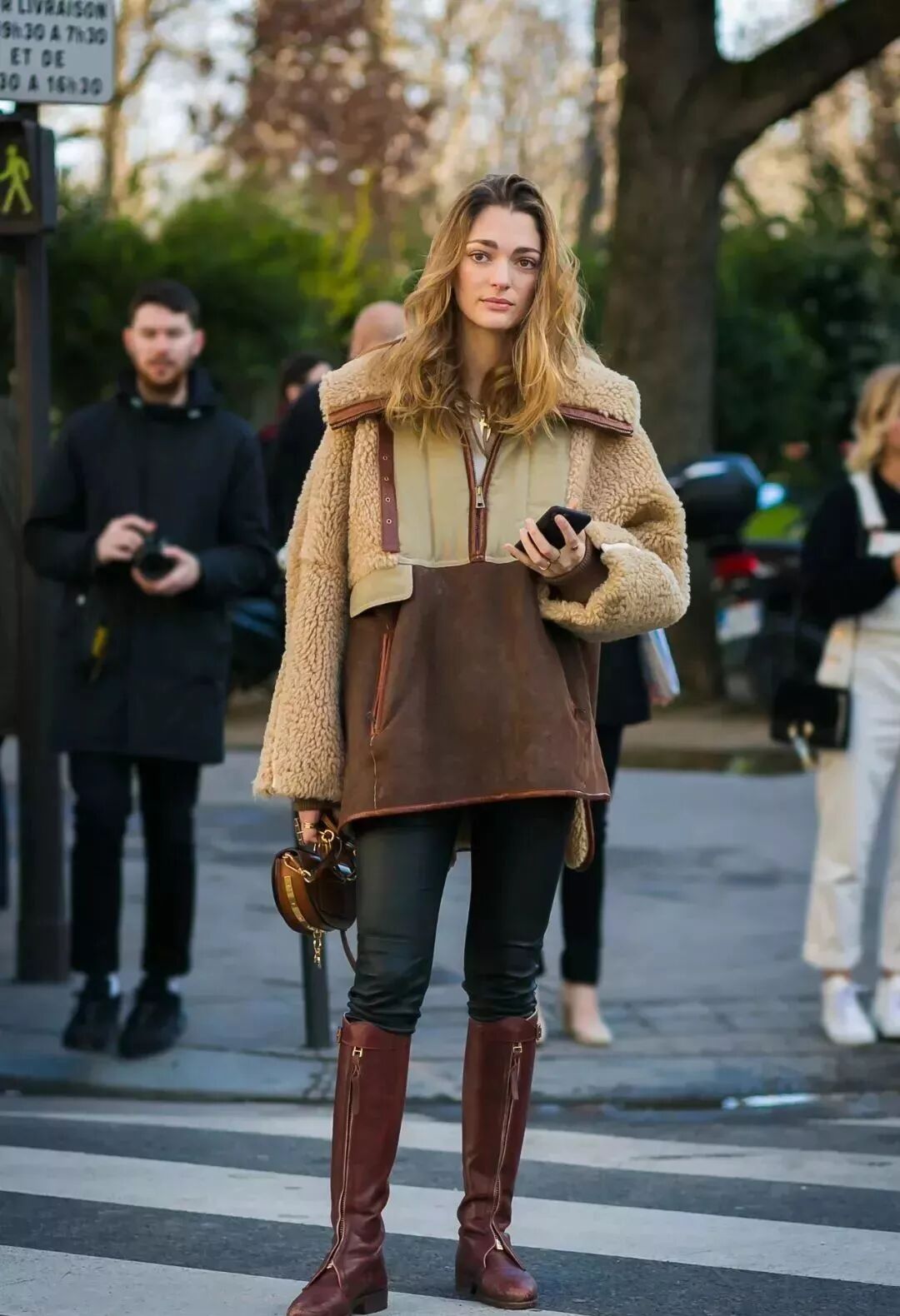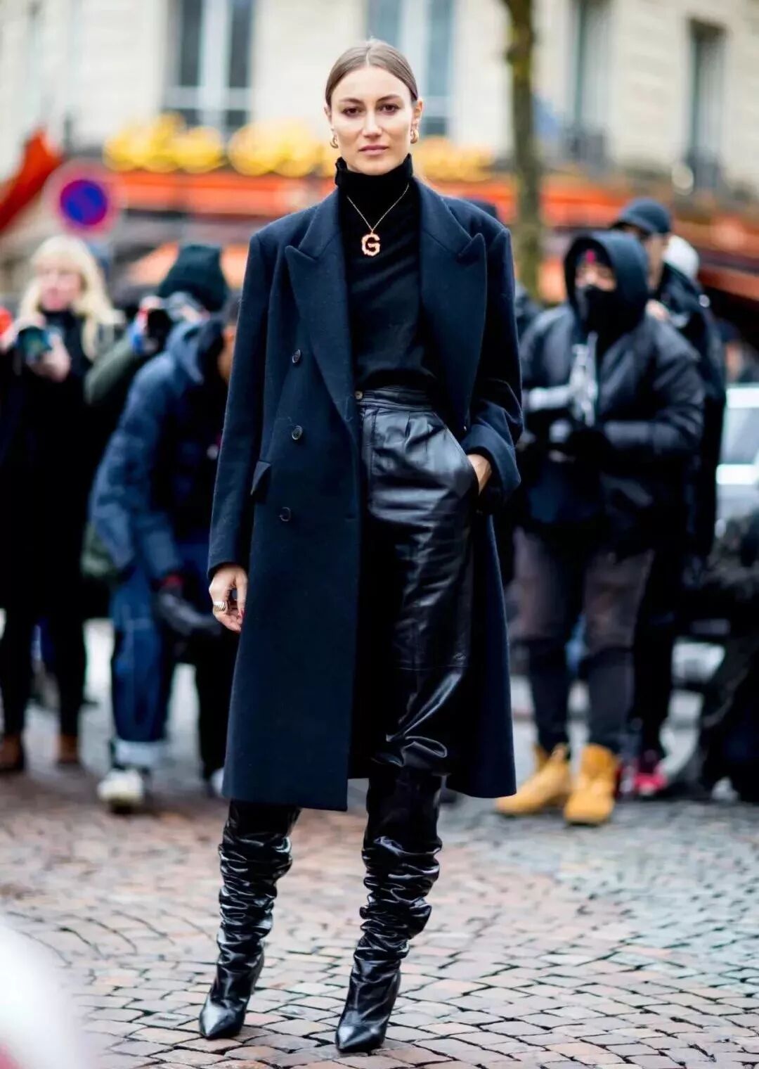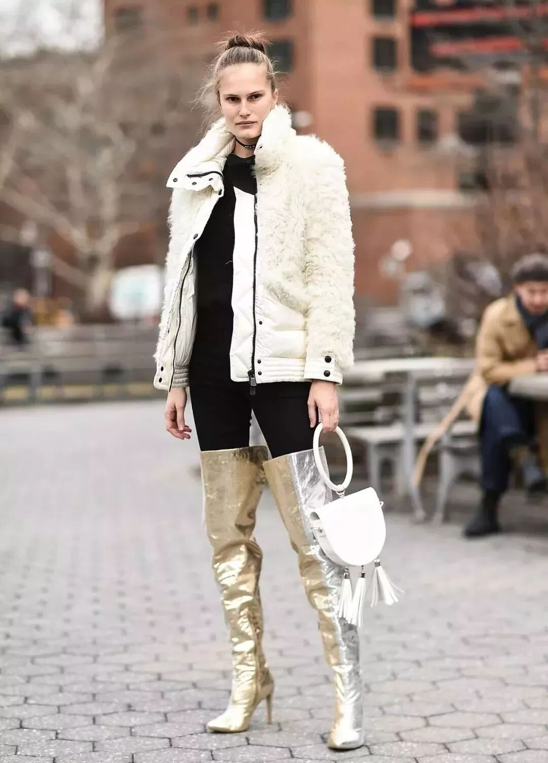 过膝长靴可是显腿细的致命法宝,将长裤统统塞进过膝靴中,造型流畅英气逼人,这般帅气没谁了!