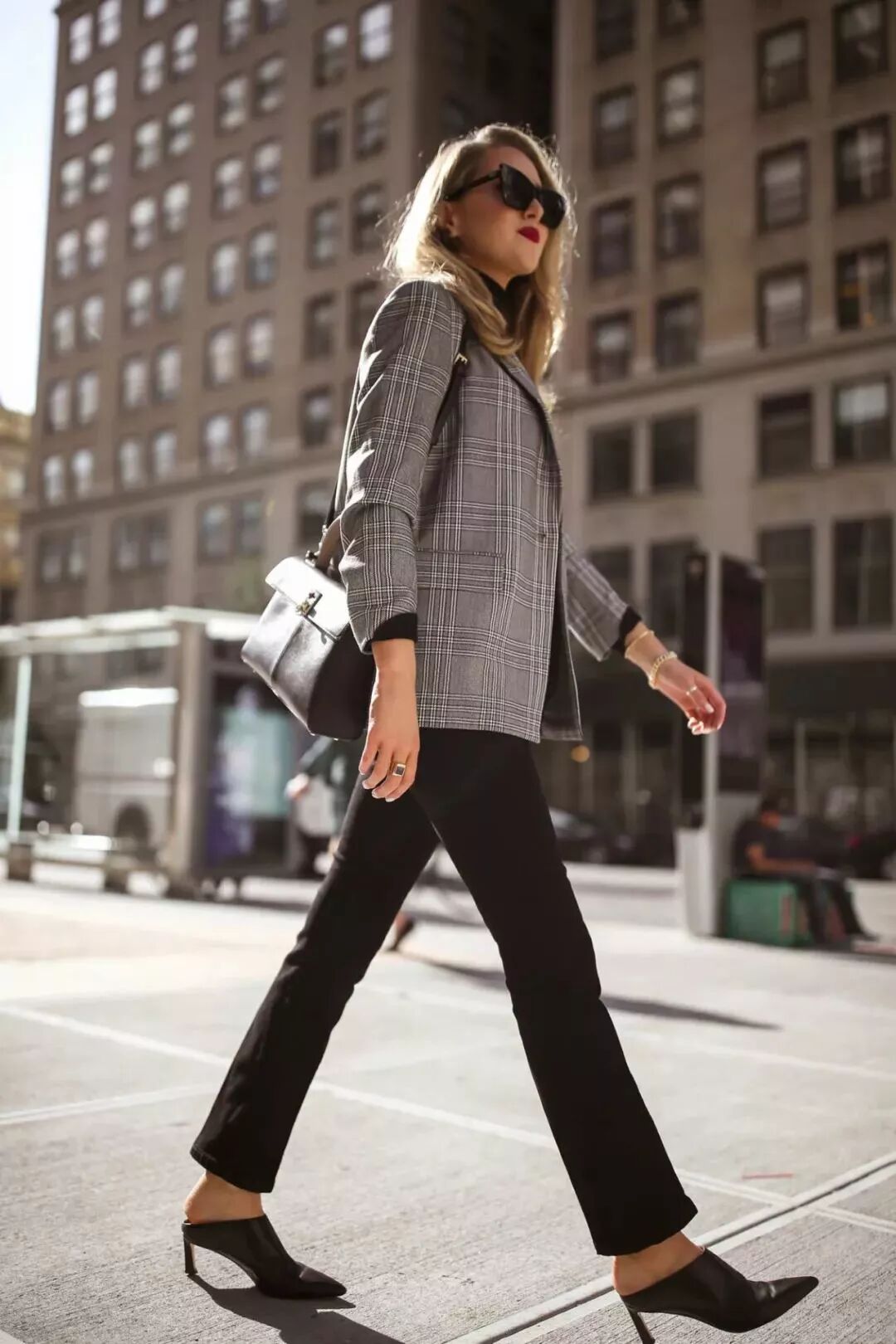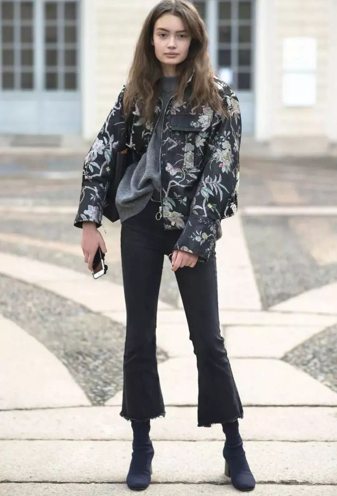 个子不高的女生可以选择九分款喇叭裤,比超长款看起来更干练精致。