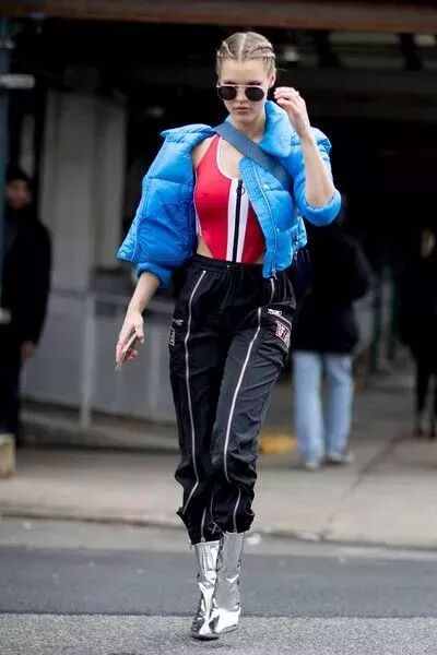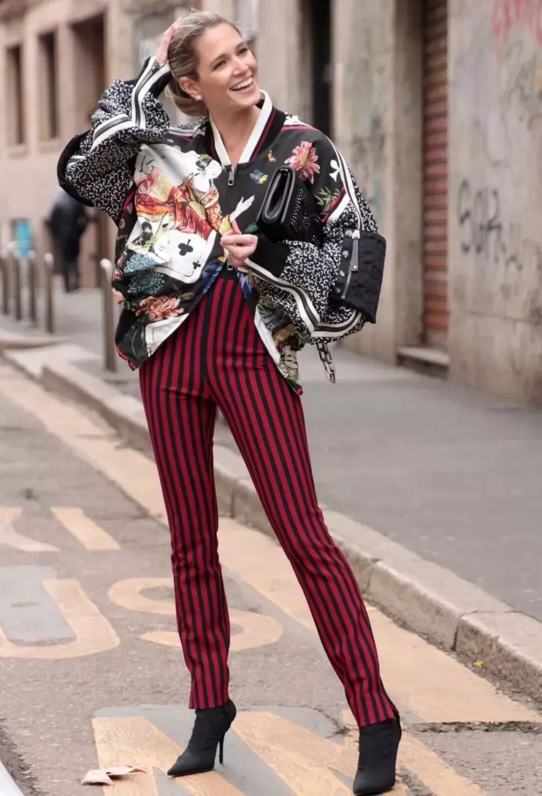 条纹图案能够轻松地带来视觉上的瘦腿感,进而穿出笔直的腿部曲线,这里说的并不是宽松的“土味运动裤”,而是这种线条相对较粗的细腿裤。